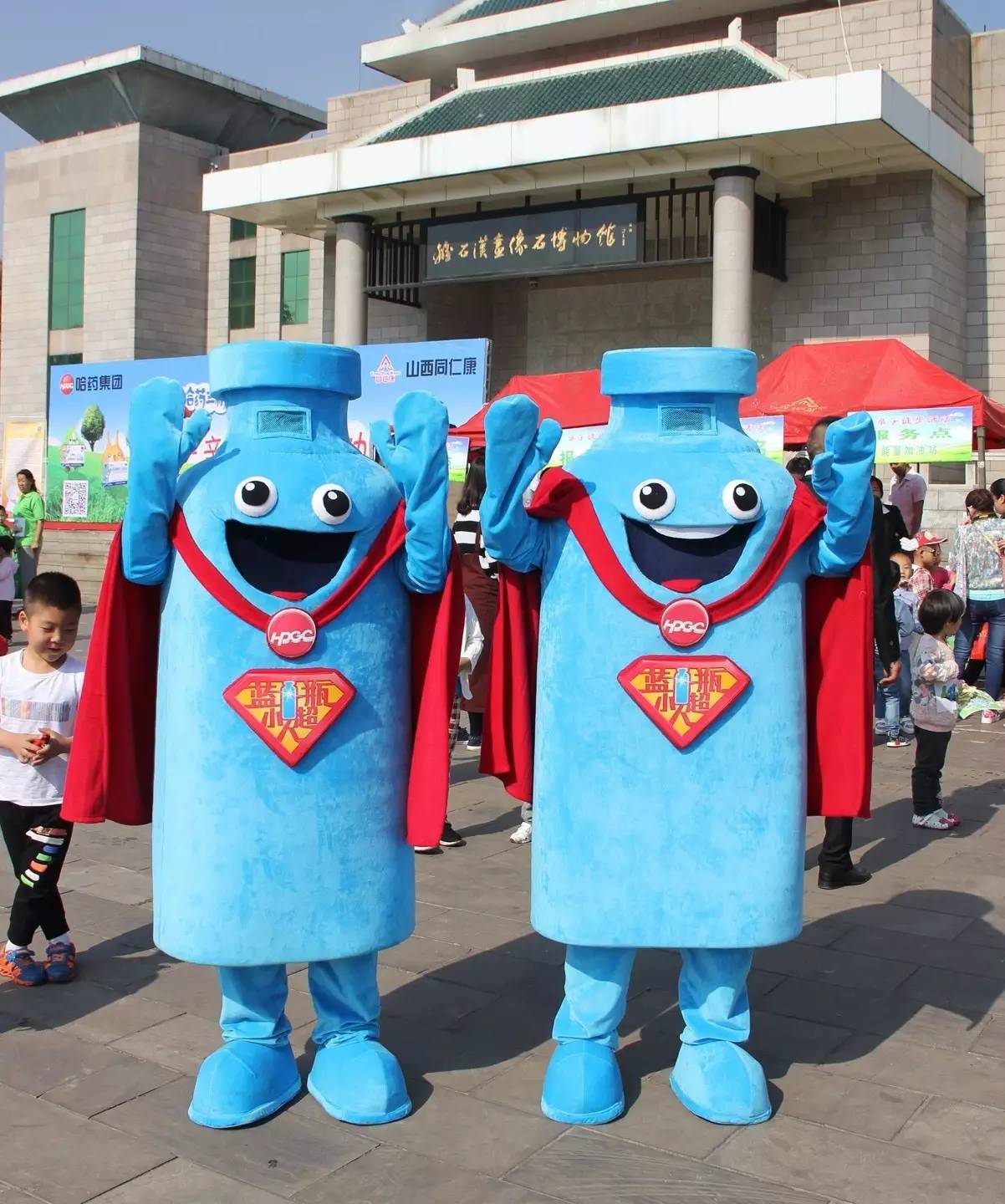 藍瓶超人與小朋友們一起互動